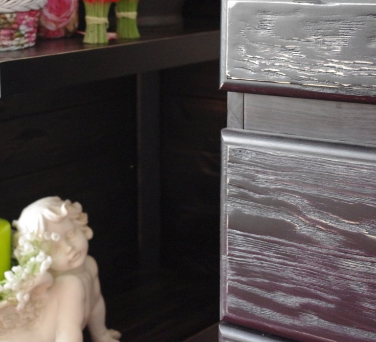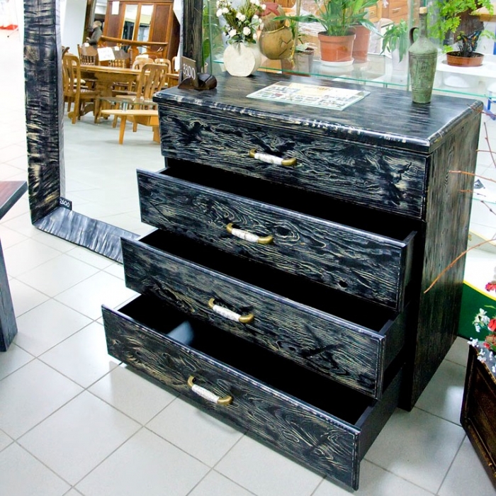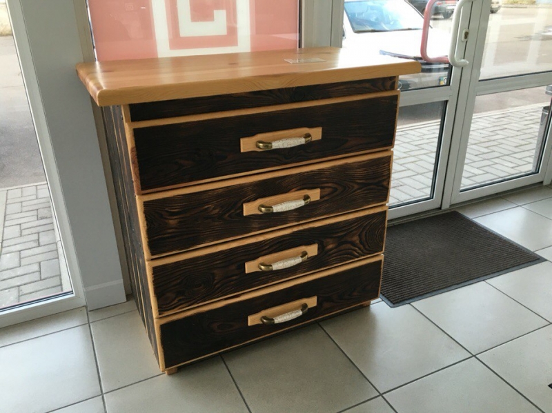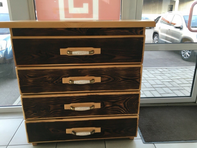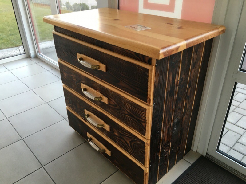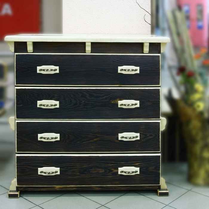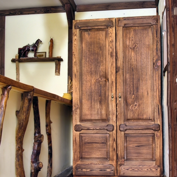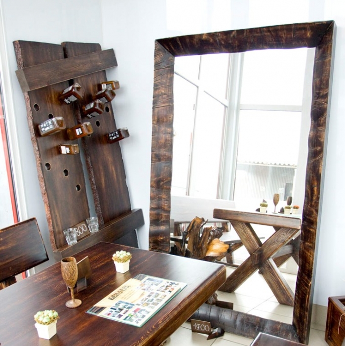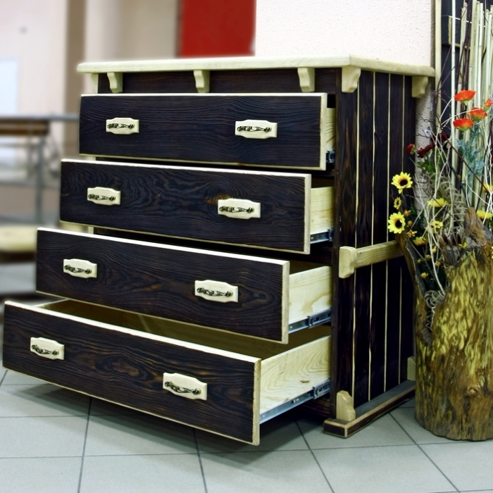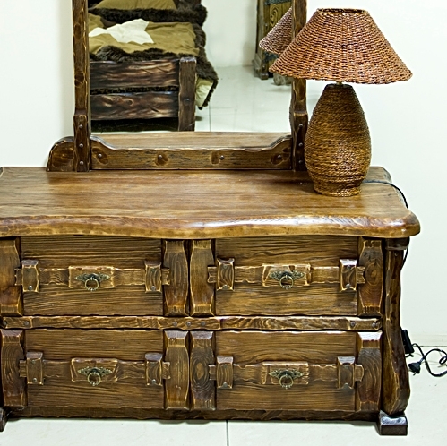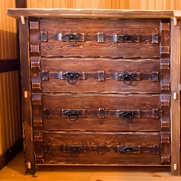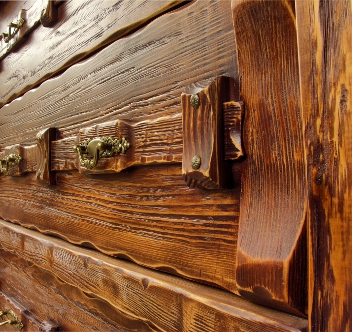 Створюючи меблі (стільці, комоди дерев’яні тощо) та декор інтер’єру, майстри зберігають і підкреслюють природну структуру дерева. Масив обробляється таким чином, що волокна стають більш помітними, а гарнітур набуває шляхетної потертості та «стародавності». При цьому деревині надаються різні відтінки на будь-який смак. Найчастіше клієнти дотримуються природної гамми: обирають благородний колір «венге», усі відтінки коричневого та бежевого. Але не менш привабливі поєднання темно-синього з білим, сіруваті, шоколадні та чорні кольори зі світлим малюнком дерева, яскраво-червоні деталі (рами на дзеркала чи ніжки) та ін. Серед виробів майстерні можна обрати класичні варіанти (дивіться «кровать из дерева») або напрочуд екзотичні комоди, що виглядають як бабусині скрині.